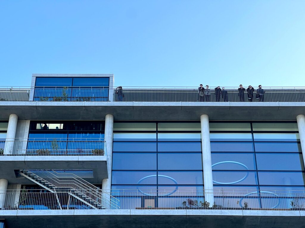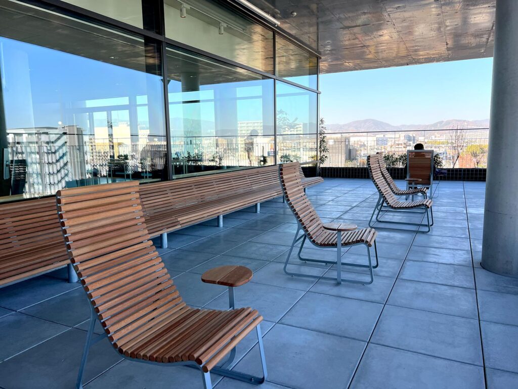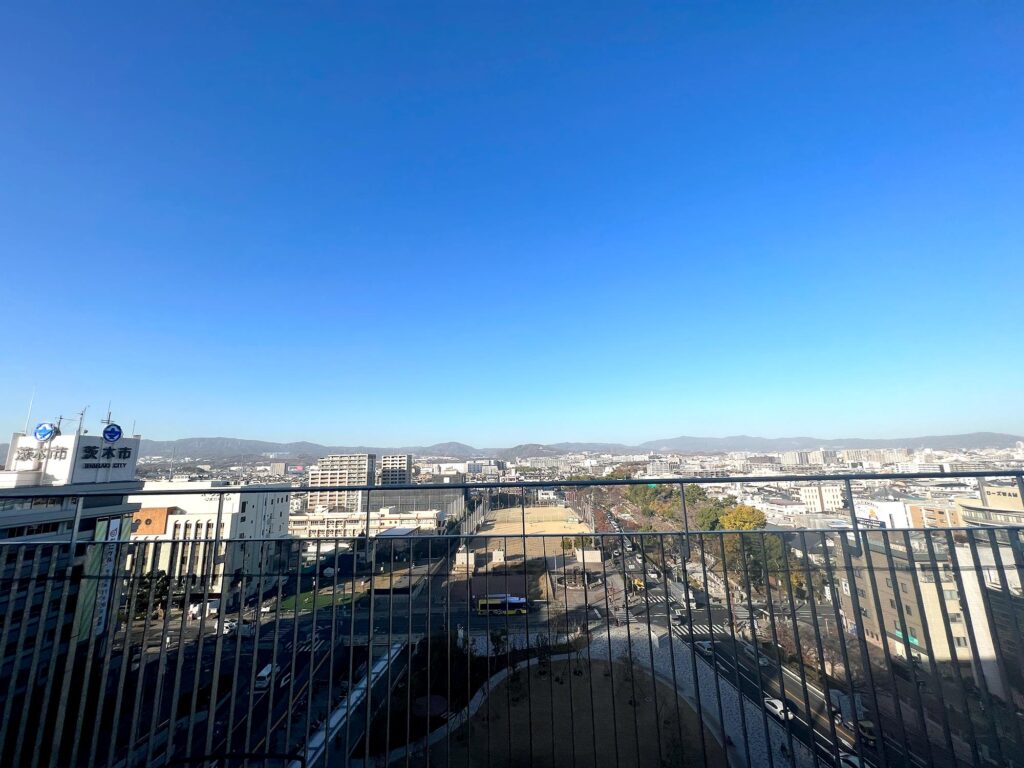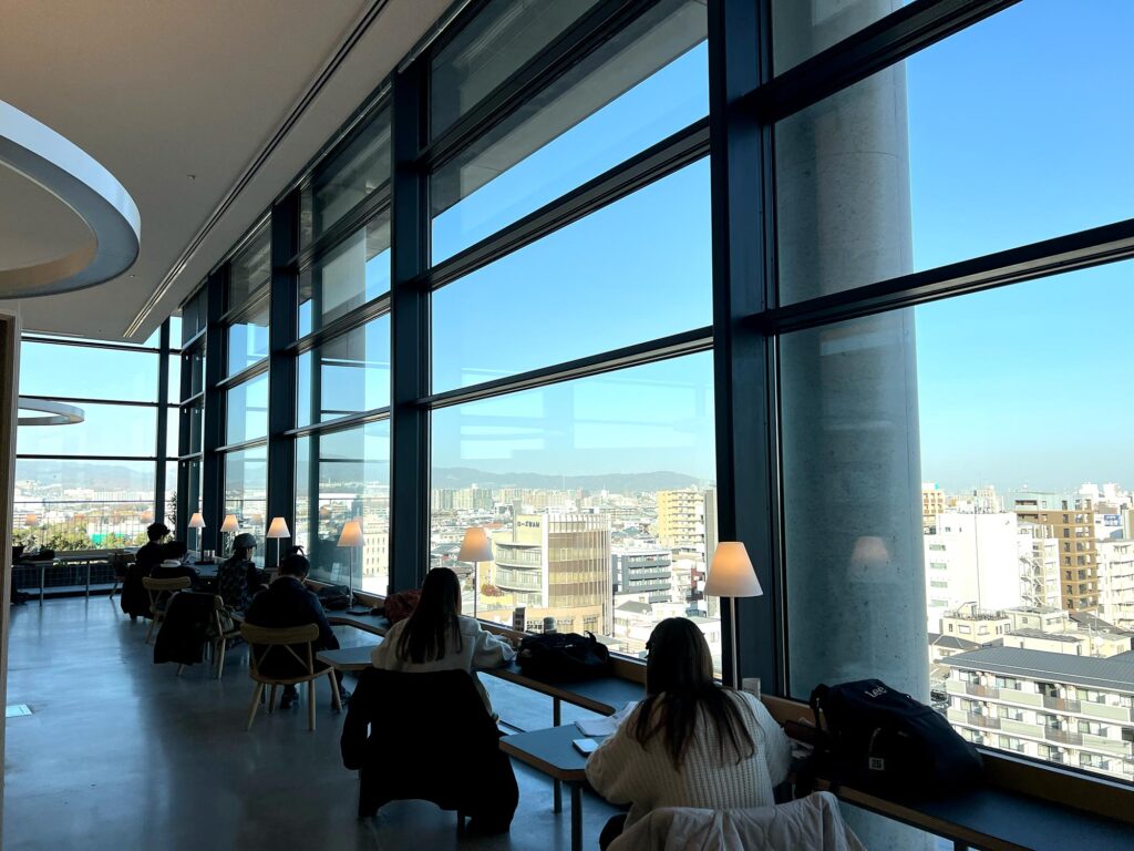 7階のテラスは他の階に比べて大きくて、机なども置かれていました。茨木市を一望できるので、晴れた日はとても気持ちの良い空間です。