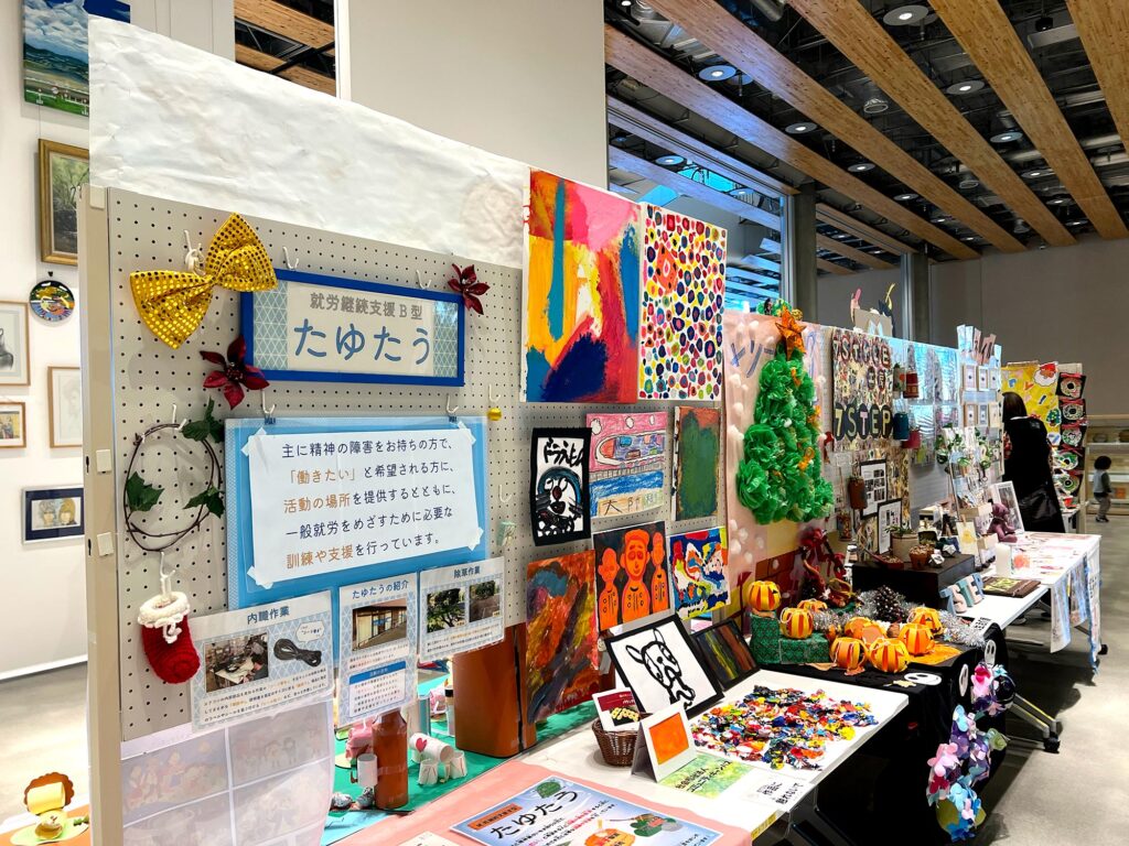 写真左側がギャラリースペース、右側に見えるのがカフェスペースとなっています。この日はオープンギャラリーで展示イベントが開催されていました。