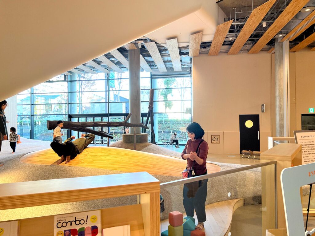 コンセプトは「まちなかの森」。雨の日でも「外あそび」ができる屋内あそび場です。乳幼児期から身近に木に触れ、“創る”、“触れる”、“感じる”など様々な体験を通して、子どもたちの豊かな感性を育むことをコンセプトとしています。