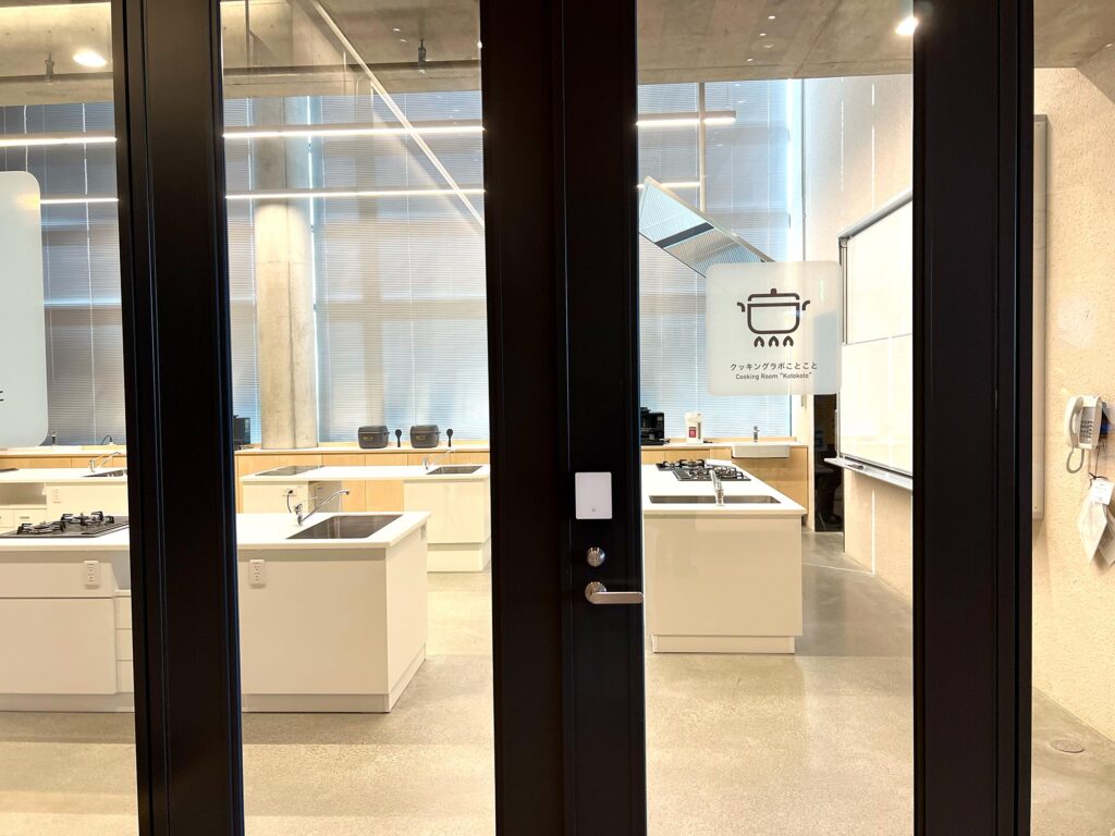 天井が高く開放的な雰囲気の調理実習室です。エントランスやきたしんホールに近い場所にあるためイベント等の料理提供やバックヤードとして使う等といった活用法が想定されているそうです。