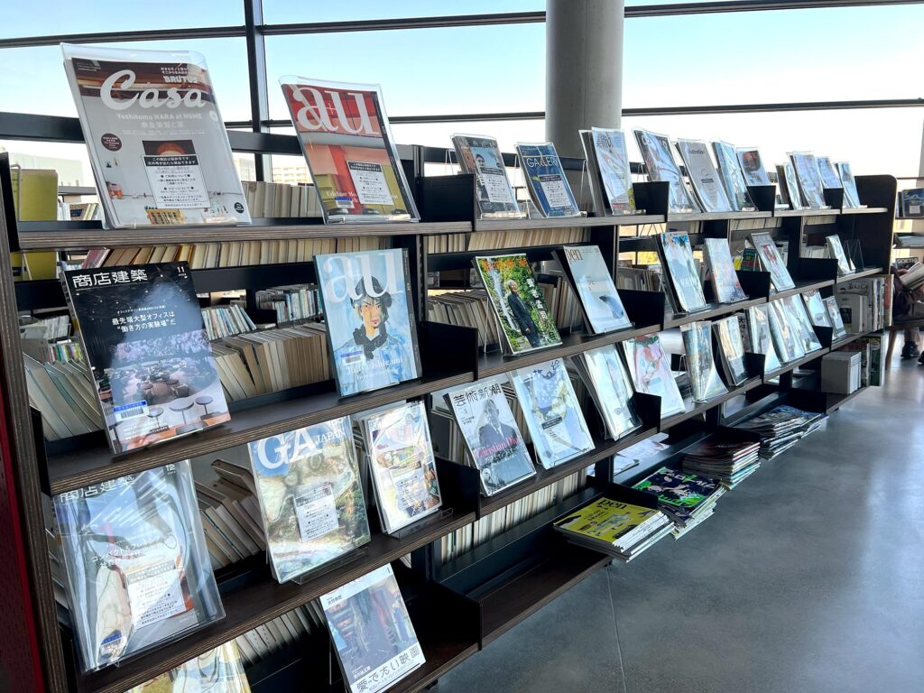 建築系の雑誌がたくさん置かれていました。ライブラリーの一角には机や椅子が置かれていて、ライブラリーの本を読むことが可能です。外のテラスにも出れますよ。