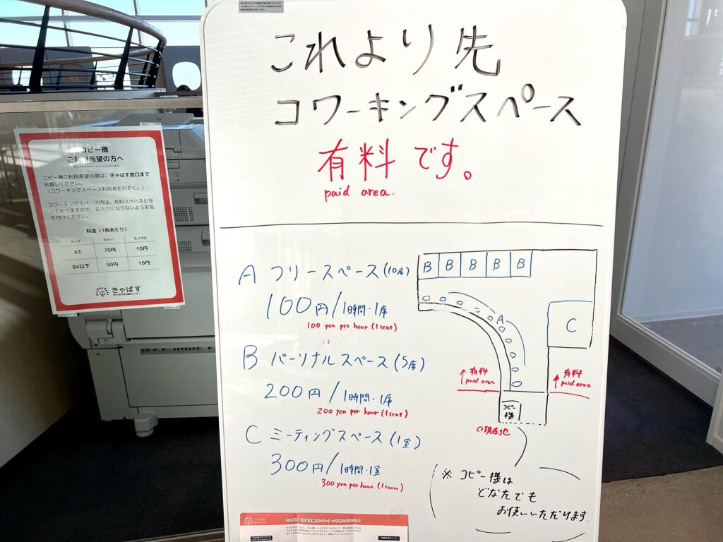 コワーキングスペースにはWi-Fiや複合機を設置されていて、事務作業などが行えるるようになっています。少人数でのミーティングにも活用できるそうなので、ちょっとした打ち合わせなどにも利用できそうですね。