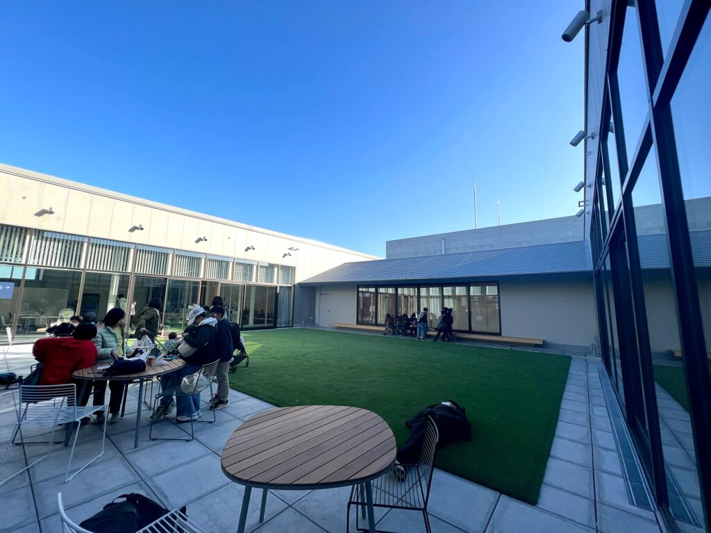 施設の外観はこのようになっていて、外には芝生広場が広がっています。