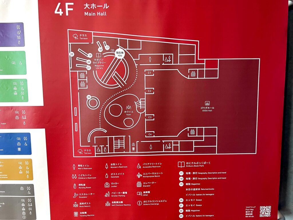 3階と同じように、1200人が収容できる大ホール(ゴウダホール)が中心のレイアウトとなっており、一部にマガジンライブラリーが配置されていました。